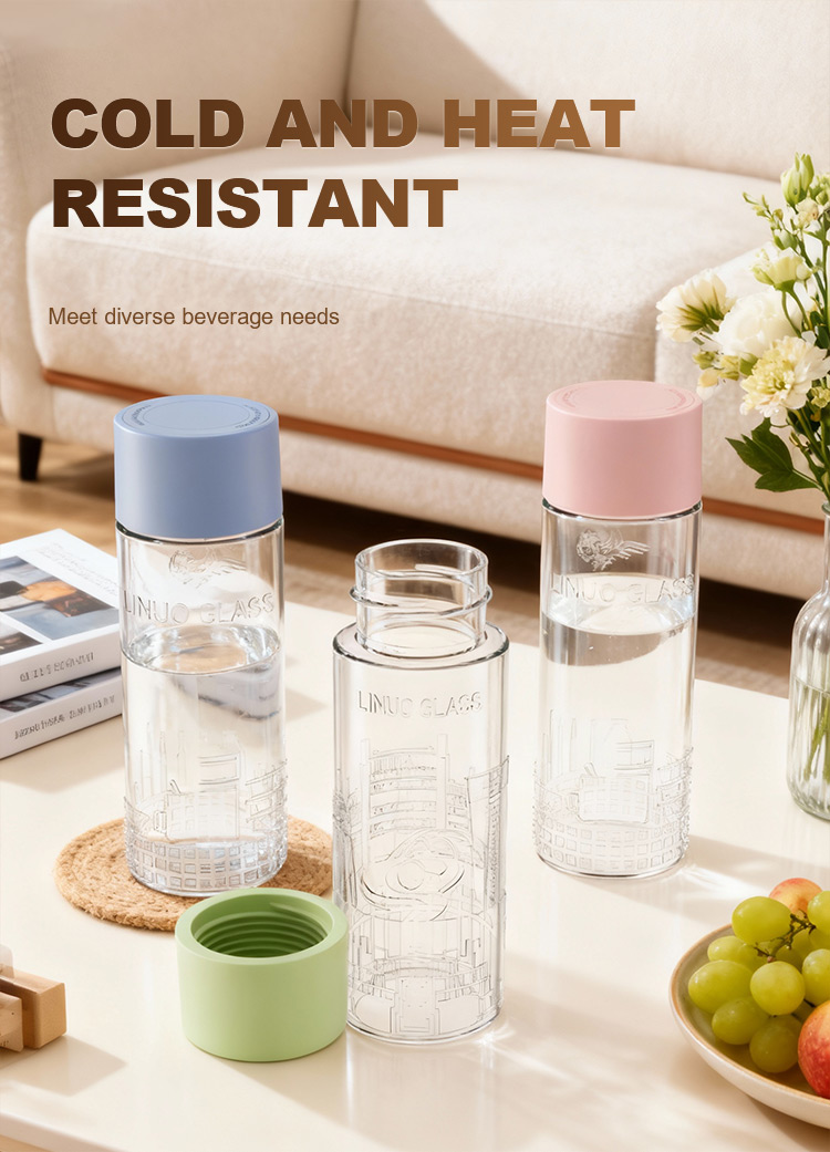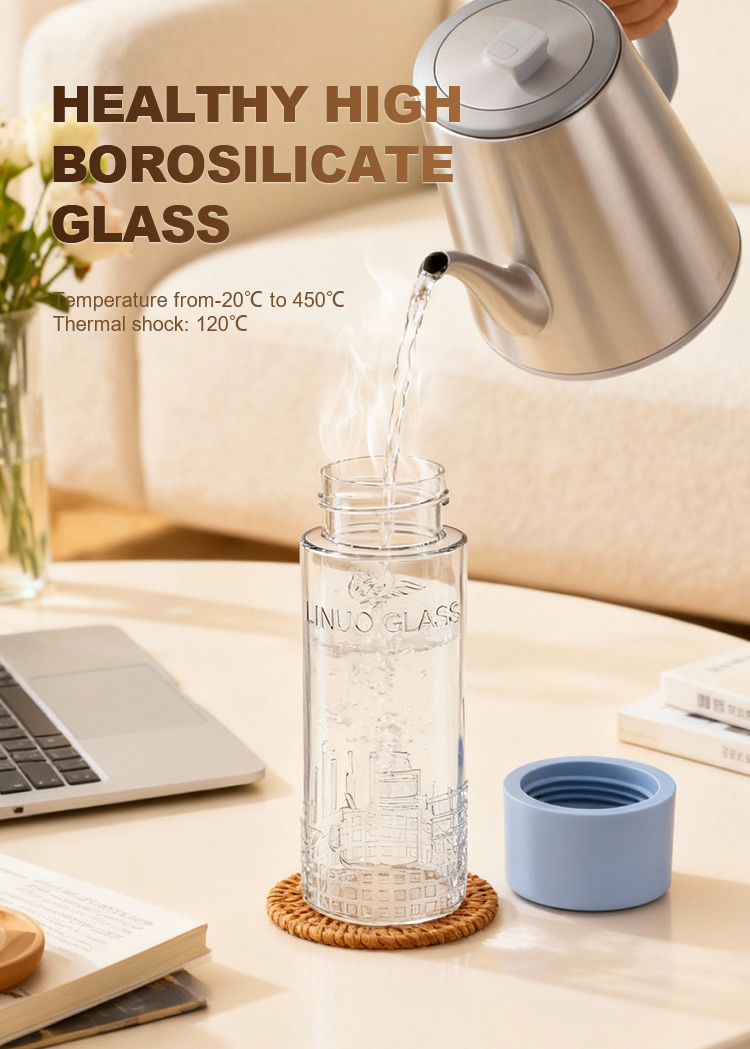 Hergestellt aus hochwertigem Borosilikatglas, bietet es hervorragende Hitzebeständigkeit, Klarheit und Robustheit und eignet sich daher perfekt für heiße und kalte Getränke. Die minimalistische Verpackung mit weißem Hintergrund hebt die klaren Gravuren der Stadtarchitektur und die vielfältigen Deckeloptionen hervor und sorgt so für eine moderne und erfrischende Ästhetik.
