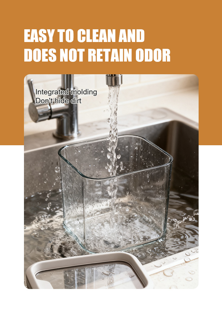 Jedes Glas besteht aus hochwertigem transparentem Glas und bietet 100 % Sicht auf seinen Inhalt, sodass kein Deckel geöffnet werden muss, um die gelagerten Gegenstände zu identifizieren. Die hellbeigen/weißen silikonversiegelten Deckel (mit glatter Oberfläche und sicherem Schnappverschluss) sorgen für einen luftdichten Verschluss, der die Frische von Trockenwaren, Snacks und Grundnahrungsmitteln für die Speisekammer sichert und gleichzeitig ein Verschütten und Gerüche verhindert.