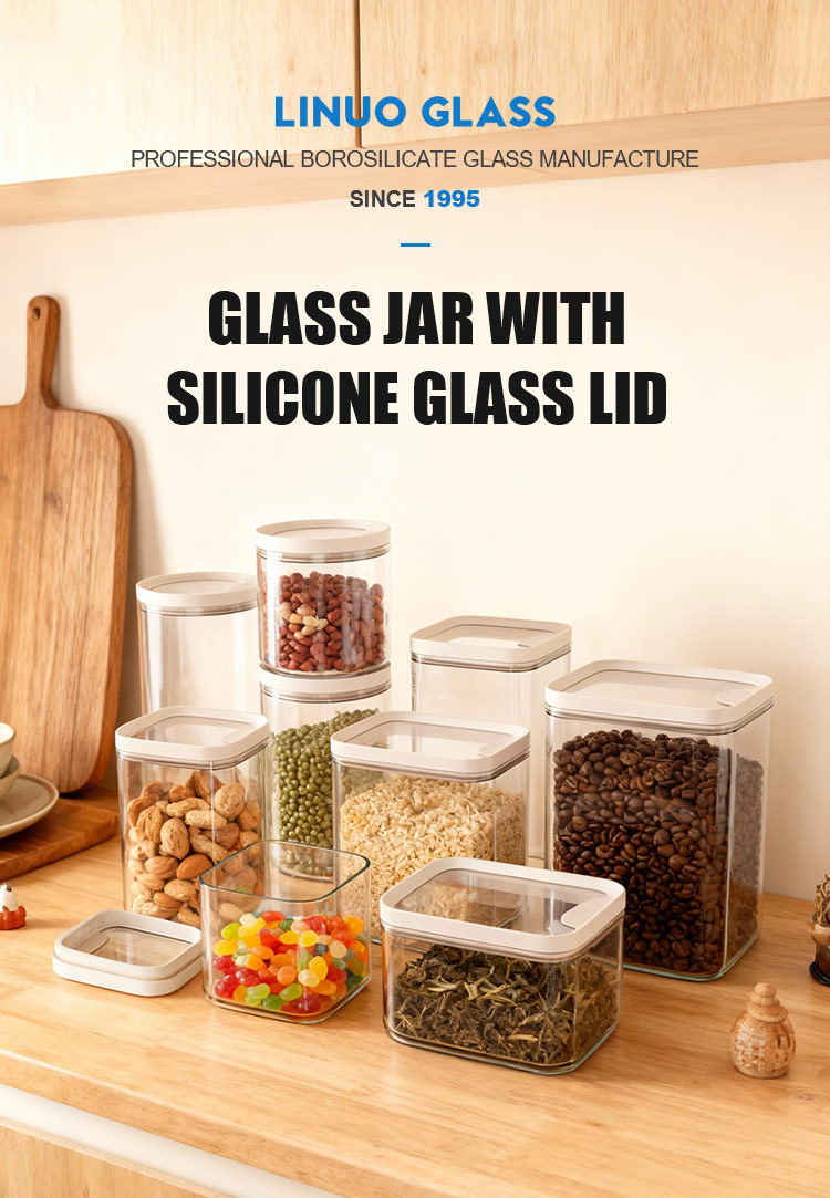 Mit den LINUO GLASS Transparenten Glasvorratsdosen mit Silikondeckeln halten Sie Ihre Küche und Speisekammer perfekt organisiert – eine vielseitige Kollektion von 9 hochtransparenten Glasdosen, die entwickelt wurden, um Frische zu bewahren und gleichzeitig die Ästhetik der Aufbewahrung zu verbessern.